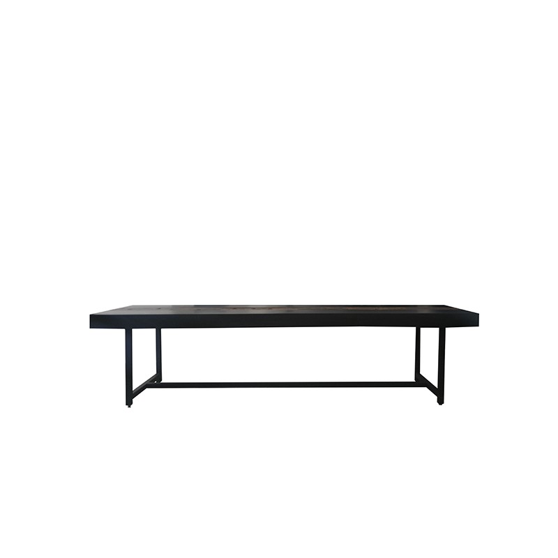 Banca elektro, con diseño contemporáneo, cubierta de pino negro con acento de madera dura y madera recuperada de cruceta de Brasil, para un aire industrial, posee herrería sólida.